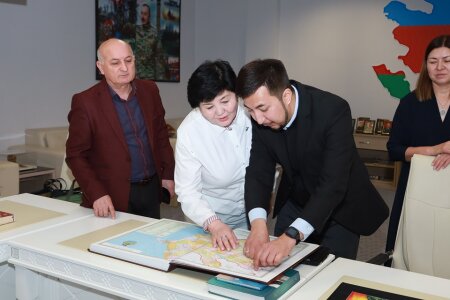 Kitabxananın fəaliyyəti ilə yaxından tanış olan qazaxıstanlı qonaqlar, öncə MEK-in Qarabağ müharibəsi qəhrəmanları fondu, buradakı guşələr, toplanan dəyərli nəşrlər haqqında ətraflı məlumat alıblar.