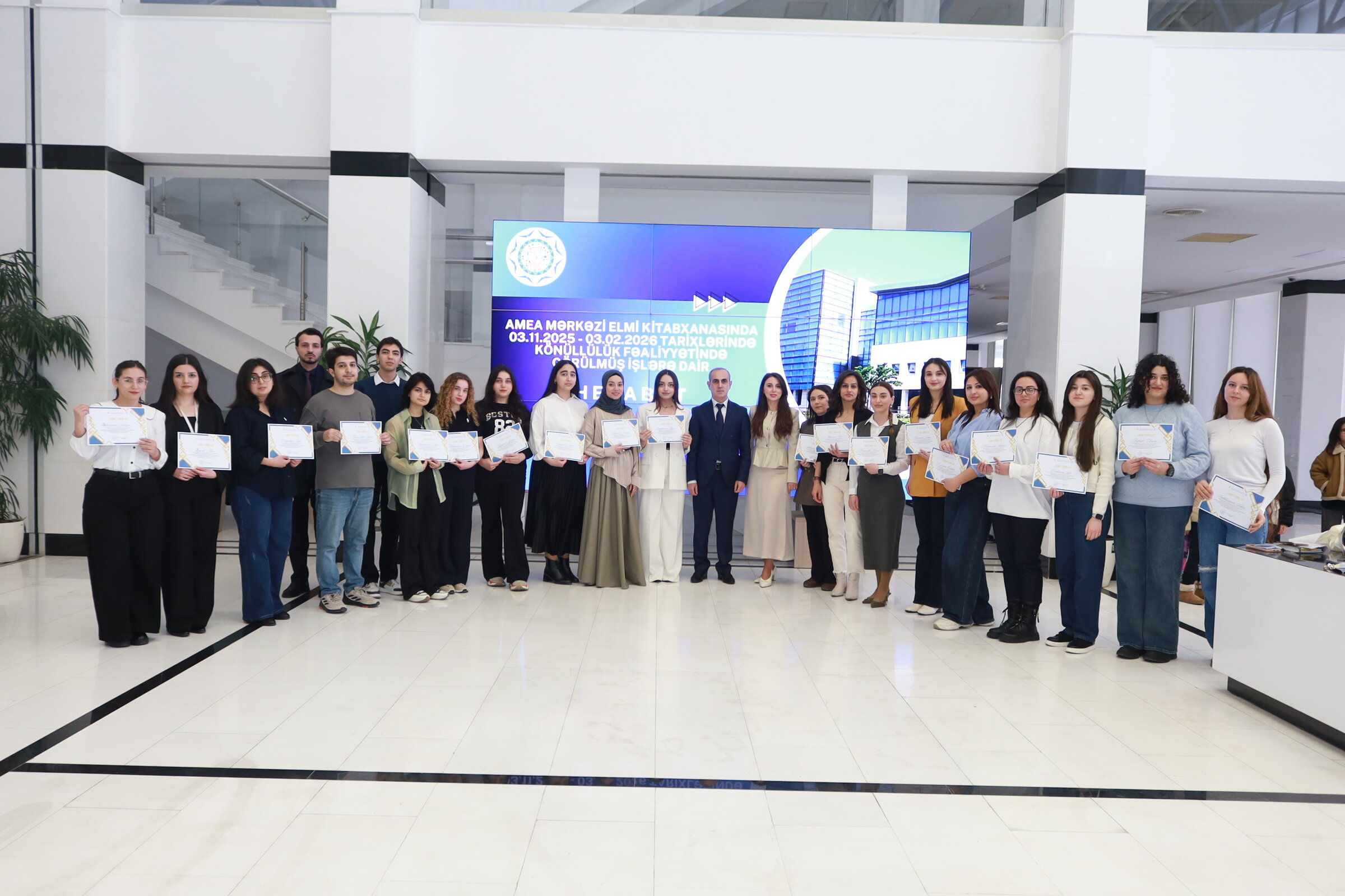 Tədbirin sonunda könüllülük proqramını müvəffəqiyyətlə başa vuran bir qrup gəncə sertifikatlar təqdim olunub. Direktor könüllülərə gələcək fəaliyyətlərində uğurlar arzulayaraq, onların kitabxana ilə əlaqələrinin hər zaman davamlı olacağını bildirib.