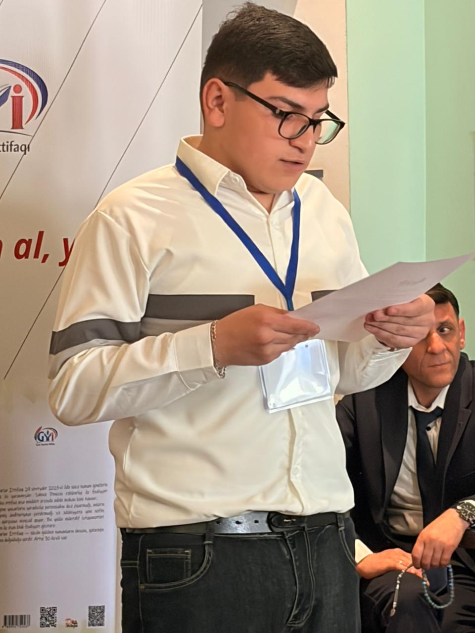 Bədii hissənin sonunda tədbirə rəng qatmaq məqsədilə Gənc Yazarlar İttifaqının şeir və nəsr yazan üzvləri arasında 10 dəqiqəlik müsabiqə təşkil olunub. Qonaqların münsif heyəti kimi iştirak etdiyi yarışmada səsvermənin nəticələrinə əsasən Qorxmaz Mahmudov qalib elan edilib.![]()