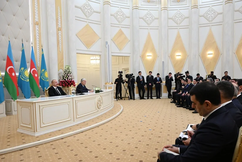 Azərbaycan və Qazaxıstan prezidentləri mətbuata bəyanatlarla çıxış ediblər