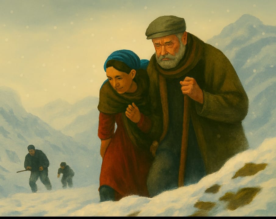 Onlar günlərlə ac-susuz yol gəlmişdilər. Susuzluqlarını qar udaraq yatırır, taqətdən düşmüş ayaqlarını sürüyə-sürüyə irəliləyirdilər. Yanlarında gedənlərin çoxu artıq yolda can vermişdilər. İndi isə sağ qalan yalnız ikisi idi.
